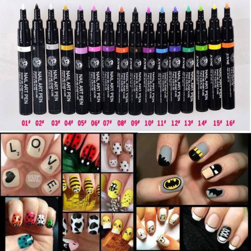 Tonsee 16 Colors Set Nail Art Pen For 3d Nail Art Diy Decoration Nail Polish Pen Set Amazon Co Uk Beauty